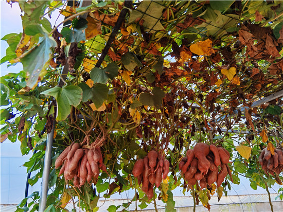 西華縣農(nóng)科所積極開展“空中結(jié)薯”試驗(yàn)種植研究,并取得成功?!翱罩薪Y(jié)薯”采取嫁接技術(shù),選用旋花科植物牽牛作砧木,脫毒薯苗作接穗嫁接而成,嫁接成活后栽到土壤里,搭建棚子,加強(qiáng)薯苗水肥管理,每株插一根小竹木桿,促進(jìn)薯苗快速生長上棚,在棚上吊花盆,盆內(nèi)放蛭石,生長到掤上的薯秧壓到花盆里,加強(qiáng)水肥管理。90天結(jié)薯,進(jìn)入10月份把花盆去掉。該技術(shù)打破傳統(tǒng)栽培方式,主要為公園、科技園區(qū)、農(nóng)業(yè)生態(tài)觀光園、家庭庭院內(nèi)培植,有很好的科研價(jià)值、觀賞價(jià)值和農(nóng)業(yè)推廣價(jià)值。周口日?qǐng)?bào)·周道客戶端記者李鳳霞 攝
