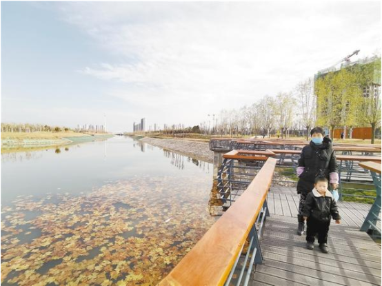 12月14日,市民在松花江路與騰飛路交叉口的休閑游園內(nèi)的木棧道上游玩。市委、市政府對(duì)中心城區(qū)洼沖溝、流沙河、幸福河等水系治理己初見成效,中心城區(qū)市民的居住環(huán)境有了巨大改變,實(shí)現(xiàn)了河暢、水清、天藍(lán)、景美。