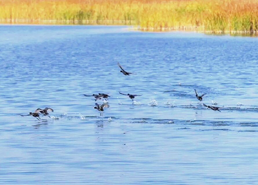 近日,我市天朗氣清、惠風和暢,引黃調蓄工程天藍水碧、水天一色的風景令人心曠神怡,其良好的生態(tài)環(huán)境吸引了很多水鳥前來棲息,如銀鏡一般的湖面上綠頭鴨、赤麻鴨、白鷺、灰鷺等禽鳥成群結隊,姿態(tài)各異。水鳥、湖水與藍天交相輝映,風光旖旎,盡顯詩意。