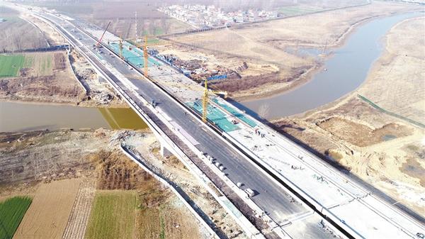 周口北環(huán)新建工程項目全線14.445km,其控制性工程為賈魯河大橋,全長904.22m。目前,賈魯河大橋左半幅橋油面已鋪設完畢,右半幅橋油面正在緊張施工,預計本月底完工。
