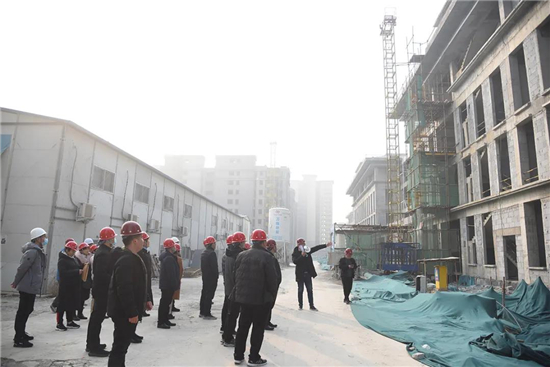 當(dāng)日上午,受院長于健委托,院領(lǐng)導(dǎo)張廣海、葉達(dá)林、王文鋒、王成坤帶領(lǐng)醫(yī)政、護理、控感等相關(guān)職能科室負(fù)責(zé)人,一行20余人到建設(shè)工地現(xiàn)場察看。施工方技術(shù)人員詳細(xì)介紹了門診樓、病房樓等各樓層的功能定位、科室布局、水暖線路等,雙方就一些細(xì)節(jié)問題進(jìn)行深入交流。
