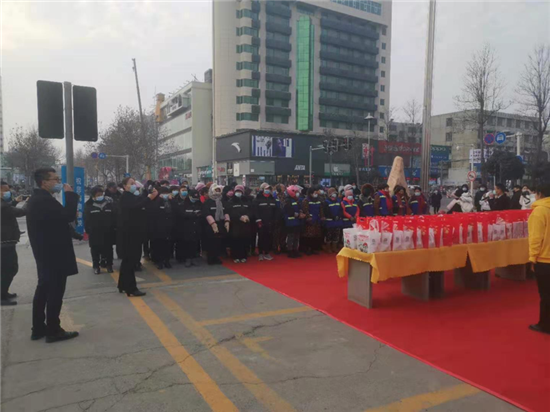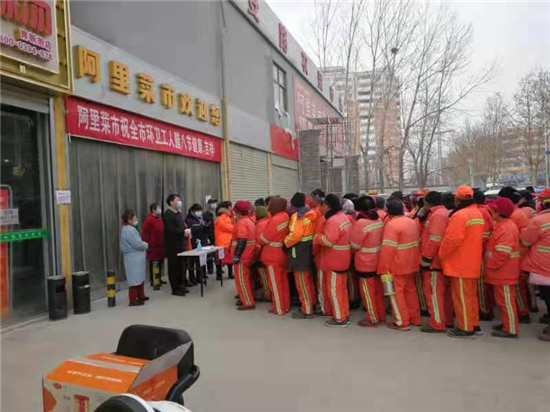 1月20日是傳統(tǒng)節(jié)日臘八節(jié),一大早,中心城區(qū)萬順達(dá)廣場(chǎng)就為川盛環(huán)境有限公司的環(huán)衛(wèi)工們準(zhǔn)備了臘八粥和毛巾、口罩等防疫物資,阿里市場(chǎng)為每名環(huán)衛(wèi)發(fā)放10元代金券,持劵可在市場(chǎng)內(nèi)消費(fèi)購(gòu)物,愛心企業(yè)為辛勤的城市美容師在寒冷的冬季送上了一份暖心的祝福。