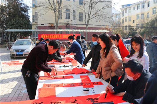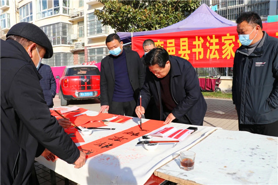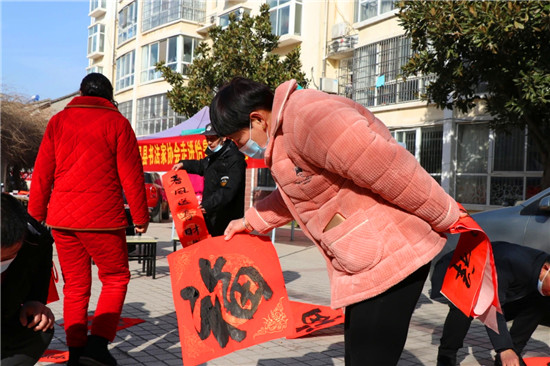 “春節(jié)前夕,縣書法家協(xié)會為群眾傾心打造文化盛宴,組織若干場義寫春聯(lián)進(jìn)社區(qū)活動,旨在弘揚(yáng)祖國傳統(tǒng)文化,豐富群眾文化生活?!甭挂乜h書法家協(xié)會主席韓文甫說。