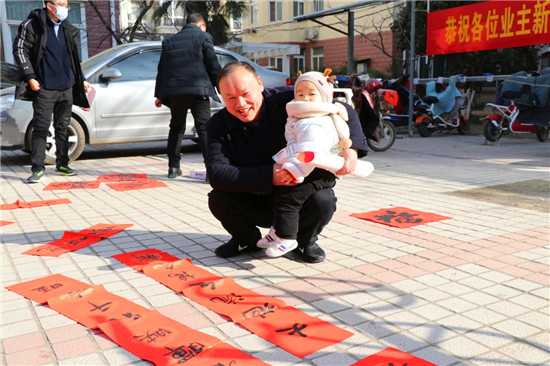 書墨飄香,春聯(lián)有情?;菁扒Ъ胰f戶的福字、春聯(lián),滿載著祝福,讓小區(qū)居民充分感受到了溫暖。②8