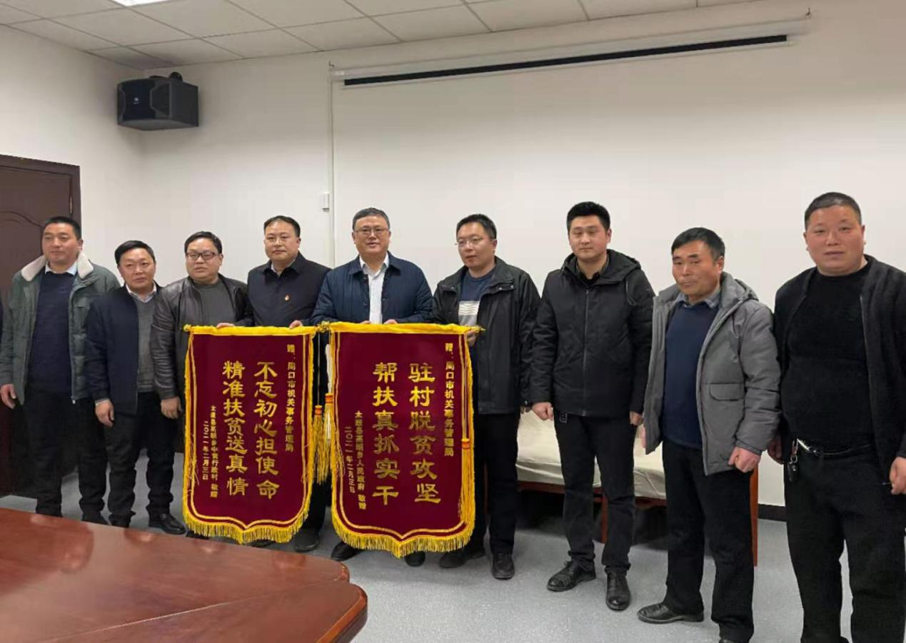 本報訊(記者 竇娜)2月4日,市機關事務管理局迎來了一批特殊的客人,該局對口幫扶村——太康縣高朗鄉(xiāng)中黃村黨支部書記黃東體和群眾代表,送來了兩面寫有“不忘初心擔使命,精準扶貧送真情”和“駐村脫貧攻堅,幫扶真抓實干”的錦旗,感謝市機關事務管理局在幫扶工作中對該村的大力支持和真情關懷。