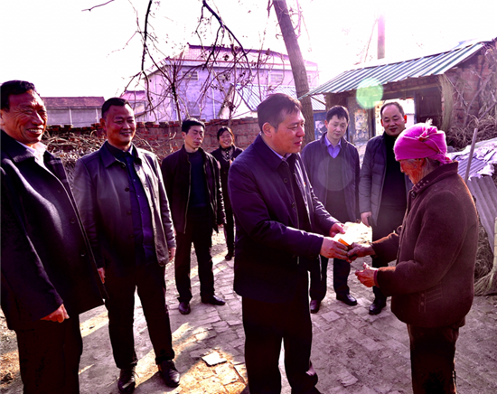 陳鳳祥先后到劉永祥、李秀芹、王喚文、劉桂蘭等8位貧困群眾和老黨員家中進(jìn)行慰問。每到一戶,陳鳳祥都詳細(xì)了解他們的家庭情況、身體狀況和年貨置辦情況等,詢問他們有什么困難,囑咐他們一定要保重身體,積極向上,開心幸福過大年。