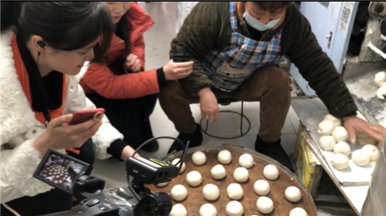 過(guò)大年,蒸饅頭。當(dāng)日9時(shí)許,在項(xiàng)城市,兩位主播唱起中國(guó)傳統(tǒng)年俗童謠,隨后走進(jìn)一家饅頭店現(xiàn)場(chǎng)直播年饃制作過(guò)程。饅頭店老板姓黃,從事饅頭制作30余年,直播開(kāi)始即見(jiàn)轟鳴的和面機(jī)攪動(dòng)著巨大的白面團(tuán),黃老板介紹說(shuō),這次和的面有130余斤,”以前是人工揉面,一個(gè)壯勞力一次揉40來(lái)斤面就不錯(cuò)了。現(xiàn)在機(jī)器揉面除了揉的多,而且快,還越揉越白,不像人工揉面越揉越黑。機(jī)器揉面越揉越勁道,做出來(lái)的饃好吃,我們這兒現(xiàn)在全機(jī)械化制作“。