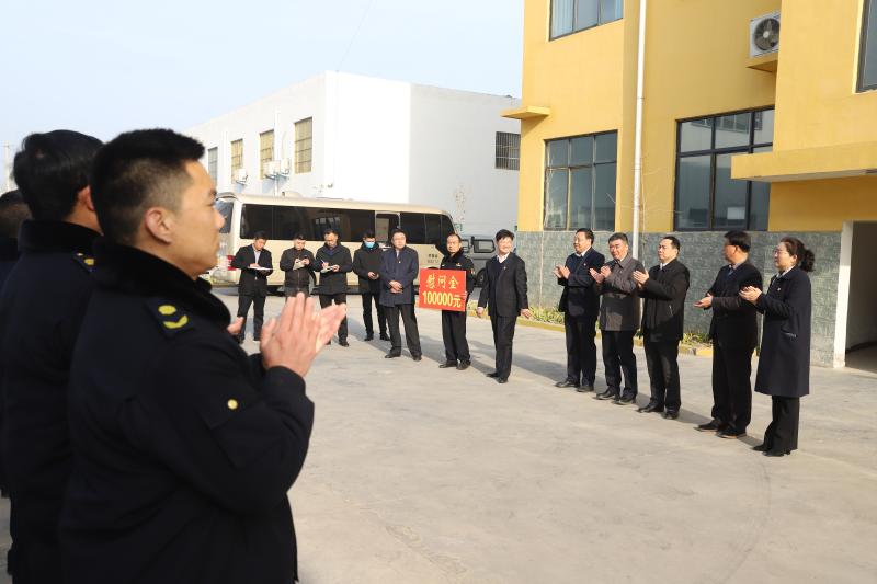 2月10日,周口港區(qū)黨委、管委會慰問民警、輔警、消防隊員、城管隊員,向長期奮戰(zhàn)在一線的工作人員以及他們的家屬致以節(jié)日的問候和祝福。港區(qū)領(lǐng)導(dǎo)孫鵬、程若光、杜廣賢、張東立、李翔、李素芹參加慰問。