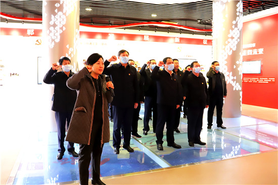 2月18日,新年上班第一天,市人大常委會副主任、鄲城縣委書記羅文閣,縣委副書記、縣長李全林帶領(lǐng)縣四個(gè)班子領(lǐng)導(dǎo)和部分縣直單位黨員干部,開展中共黨史學(xué)習(xí)教育活動(dòng),激勵(lì)全縣各級黨員干部不忘初心、牢記使命,在新時(shí)代不斷加強(qiáng)黨的建設(shè),更加緊密地團(tuán)結(jié)在以習(xí)近平同志為核心的黨中央周圍,始終保持永不懈怠的精神狀態(tài)和一往無前的奮斗姿態(tài),振奮精神,堅(jiān)定信心,銳意進(jìn)取,真抓實(shí)干,奮力譜寫全面建設(shè)社會主義現(xiàn)代化鄲城新篇章,以優(yōu)異成績迎接建黨100周年。