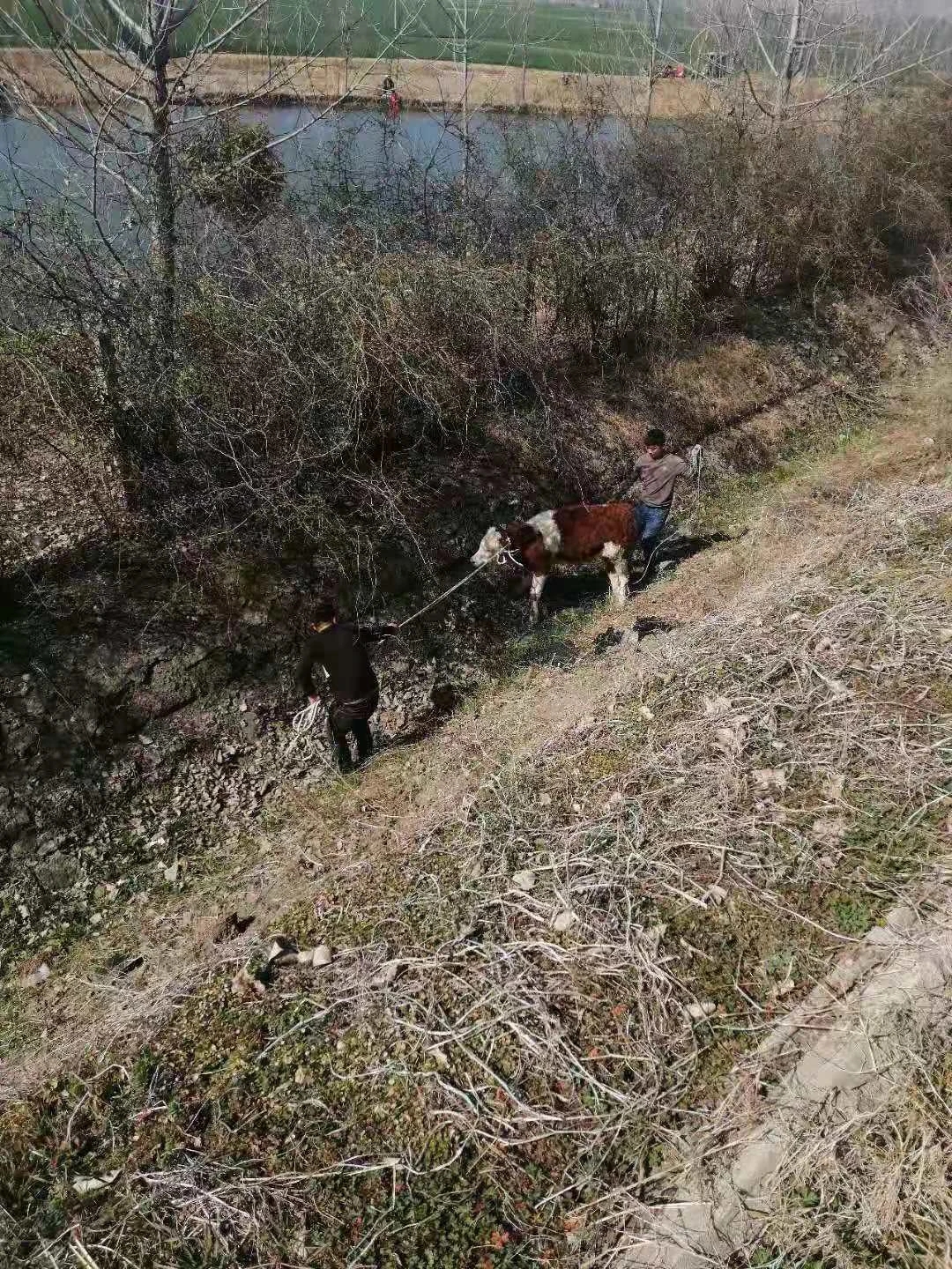 接警后,距離事發(fā)地點最近的周口高速二大隊項城中隊值班民警迅速趕往現(xiàn)場。民警到達現(xiàn)場后了解到,一輛專業(yè)運輸肉牛貨車從北方到南方運輸肉牛,有兩頭牛在行駛途中突然受驚撞破了車上鋼管圍欄跳到了高速公路上,其中一頭又越過中央隔離護欄跑到了對向車道。一輛行駛中轎車躲避不及與牛發(fā)生碰撞,導(dǎo)致車輛嚴(yán)重?fù)p壞,牛被撞死。另一頭沿著高速公路護欄來回折騰著跑,過路車輛紛紛躲避,形勢也十分危險。民警立即指揮來車暫停,招呼司機等人把牛趕下高速公路邊溝,減少危險,然后分段站在護欄處把守,讓有捉牛經(jīng)驗的車主和司機在邊溝內(nèi)捉牛。