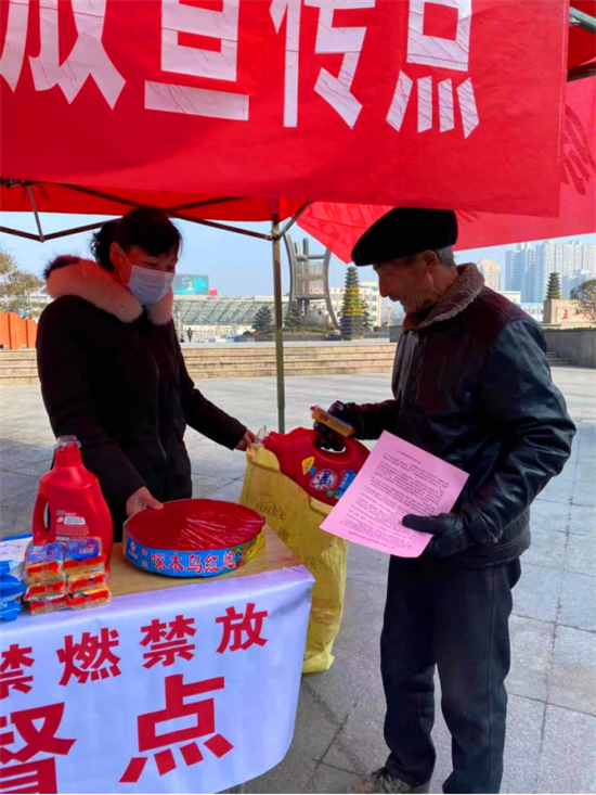 廣泛宣傳,營(yíng)造氛圍。通過(guò)發(fā)放彩頁(yè)、懸掛條幅、轉(zhuǎn)發(fā)微信群朋友圈等形式做好基礎(chǔ)宣傳,曉以利害,形成市民“不想放”的思想;通過(guò)城管宣傳車(chē)、社區(qū)小喇叭移動(dòng)宣傳隊(duì)、沿街商鋪電子屏滾動(dòng)播放標(biāo)語(yǔ)等形式多方位、“固定+流動(dòng)”的360°無(wú)死角宣傳覆蓋,形成轄區(qū)“不能放”的氛圍;在五一廣場(chǎng)、潁河沿岸等重點(diǎn)區(qū)域設(shè)置禁燃禁放值班點(diǎn)、煙花爆竹兌換點(diǎn),引導(dǎo)群眾拿出積存煙花爆竹兌換香皂、洗衣液等生活用品,并結(jié)合夜間綜治巡邏隊(duì),“白+黑”全天候做好巡邏值班工作,形成群眾“不敢放”的環(huán)境。