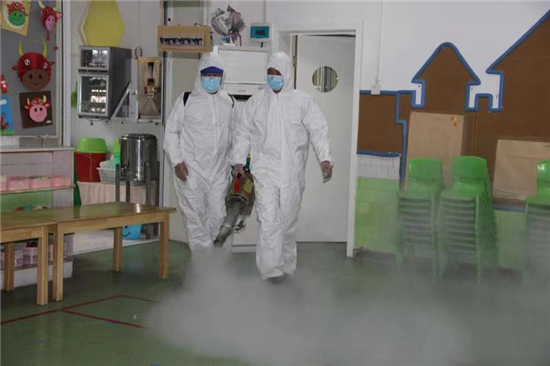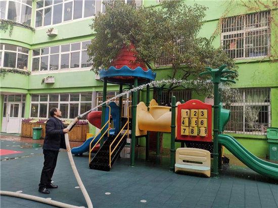 2月27日下午, 周口市市直幼兒園聯(lián)系周口市藍(lán)天救援隊(duì)專業(yè)消殺人員,對(duì)幼兒園的公共區(qū)域環(huán)境、大型玩具、走廊、活動(dòng)室等場(chǎng)所逐步實(shí)施消殺,重點(diǎn)對(duì)樓道、樓梯扶手、衛(wèi)生間等關(guān)鍵區(qū)域?qū)嵤┟芗?,做到全面、徹底、不留死角?/p>