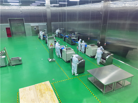據(jù)了解,周口乾盛中央廚房是川匯區(qū)2020年重點(diǎn)招商引資項(xiàng)目。公司以綠色、健康、營養(yǎng)、安全的餐飲服務(wù)為宗旨,采用國內(nèi)先進(jìn)的食品自動(dòng)生產(chǎn)流水線,采取“統(tǒng)一配方、統(tǒng)一加工、統(tǒng)一配送”的方式,為全市大中專院校、中小學(xué)校、企事業(yè)單位等提供專業(yè)團(tuán)膳服務(wù)。記者在現(xiàn)場看到,該企業(yè)的生產(chǎn)操作間細(xì)分為面食、烹飪、米飯、凈菜等獨(dú)立區(qū)域。操作間里的工作人員穿戴一次性消毒服裝、口罩、頭罩、鞋套,各司其職、有條不紊地操作設(shè)備。全廠安裝有300多個(gè)攝像頭,實(shí)現(xiàn)360度無死角監(jiān)控,可以隨時(shí)查看生產(chǎn)和配餐情況。在蔬菜清洗處理方面,該企業(yè)先對(duì)蔬菜進(jìn)行拆箱、分揀并開始一次清洗,然后進(jìn)行二次清洗、切割和脫水,使用凈化水對(duì)蔬菜進(jìn)行旋流沖洗,并通過探針探測水的潔凈度,根據(jù)水質(zhì)量隨時(shí)更換。生產(chǎn)操作間內(nèi)的先進(jìn)工藝和設(shè)備也格外吸人眼球,旋轉(zhuǎn)式燃?xì)獬村佋谶@里被稱為炒菜機(jī)器人,讓炒菜實(shí)現(xiàn)了智能化、標(biāo)準(zhǔn)化,工作人員只需將切配脫水后的材料按照標(biāo)準(zhǔn)調(diào)配好入鍋,設(shè)置自動(dòng)運(yùn)轉(zhuǎn)程序就可以,不用人工攪拌。