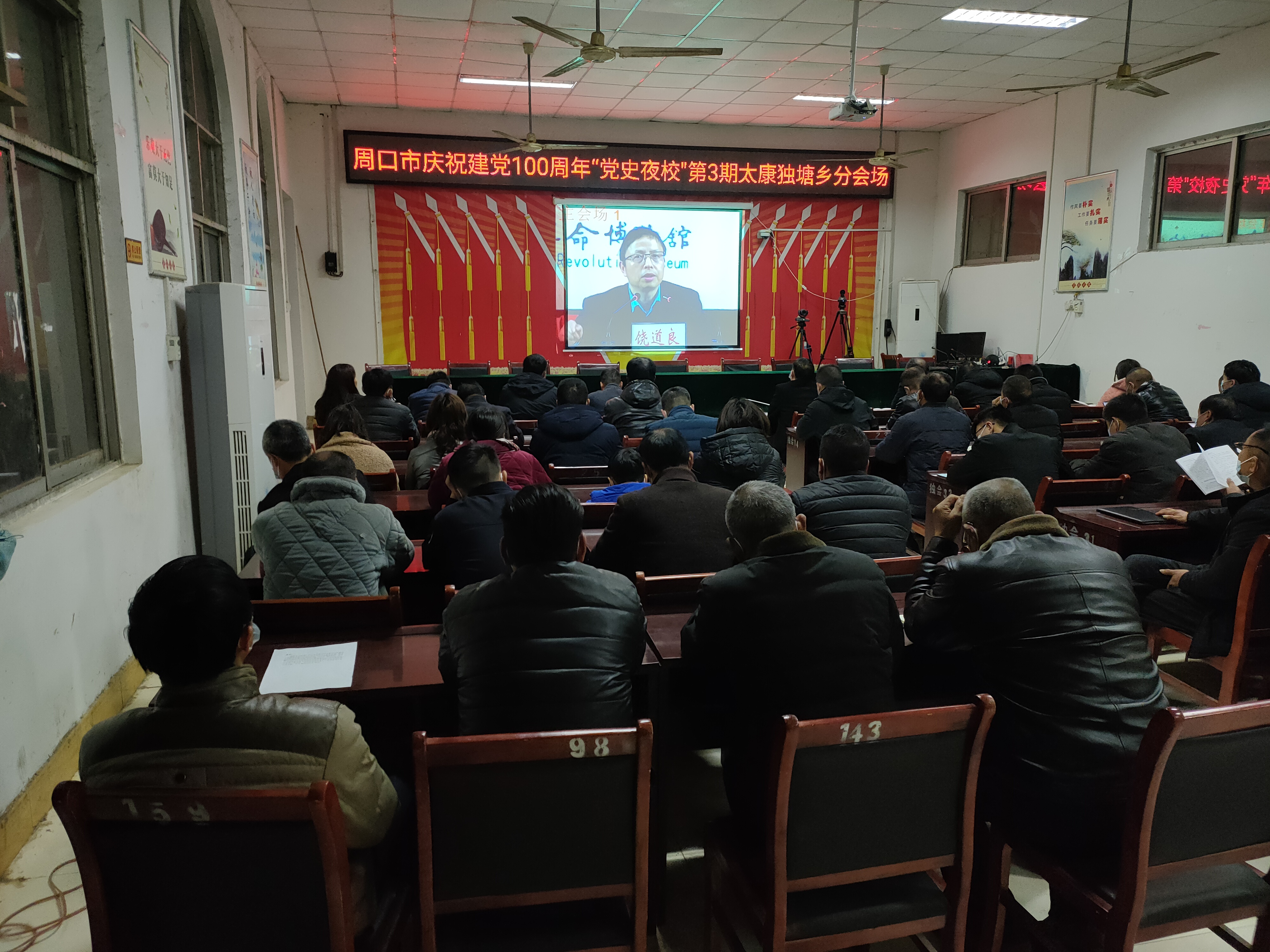 3月18日晚,周口市舉辦慶祝中國共產黨成立100周年“黨史夜?!钡谌趯n}講座。太康縣獨塘鄉(xiāng)組織鄉(xiāng)領導班子、鄉(xiāng)政府機關黨支部全體黨員、34個行政村支部書記、鄉(xiāng)直機關負責人、各行政村全體黨員、兩委干部在鄉(xiāng)政府會議室和各行政村分會場收聽收看。