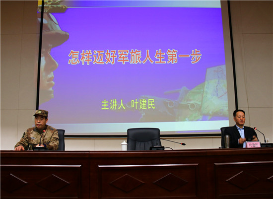 授課中,葉建民教授結(jié)合當前國際國內(nèi)形勢和自身經(jīng)歷,深刻剖析了強國強軍的重要意義。為即將參軍入伍的“準新兵”,如何端正入伍動機、適應部隊生活、弘揚尚武精神、立志軍營建功立業(yè),指明了前進方向。葉教授整個授課見解獨到、分析透徹,語言精彩、內(nèi)涵深刻,讓人深受啟發(fā)、獲益匪淺,授課過程中多次爆發(fā)熱烈的掌聲。