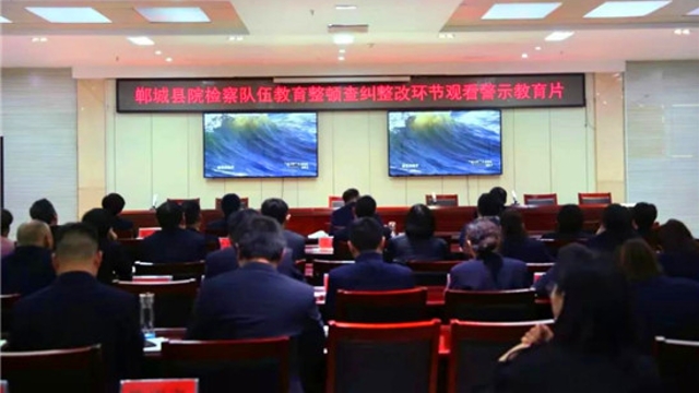 為深入推進(jìn)政法隊(duì)伍教育整頓工作,5月19日下午,淮陽區(qū)人民檢察院召開教育整頓查糾整改環(huán)節(jié)警示教育大會(huì),組織檢察干警觀看《賈小剛案警示錄》。
