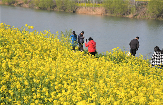 春分過后,遠眺沙河灣,春暖花開香。早種的油菜花已經(jīng)盛開,大片競相綻放的油菜花,和著明媚的陽光、溫暖的春風、碧波蕩漾的河水,讓人心曠神怡、物我兩忘。