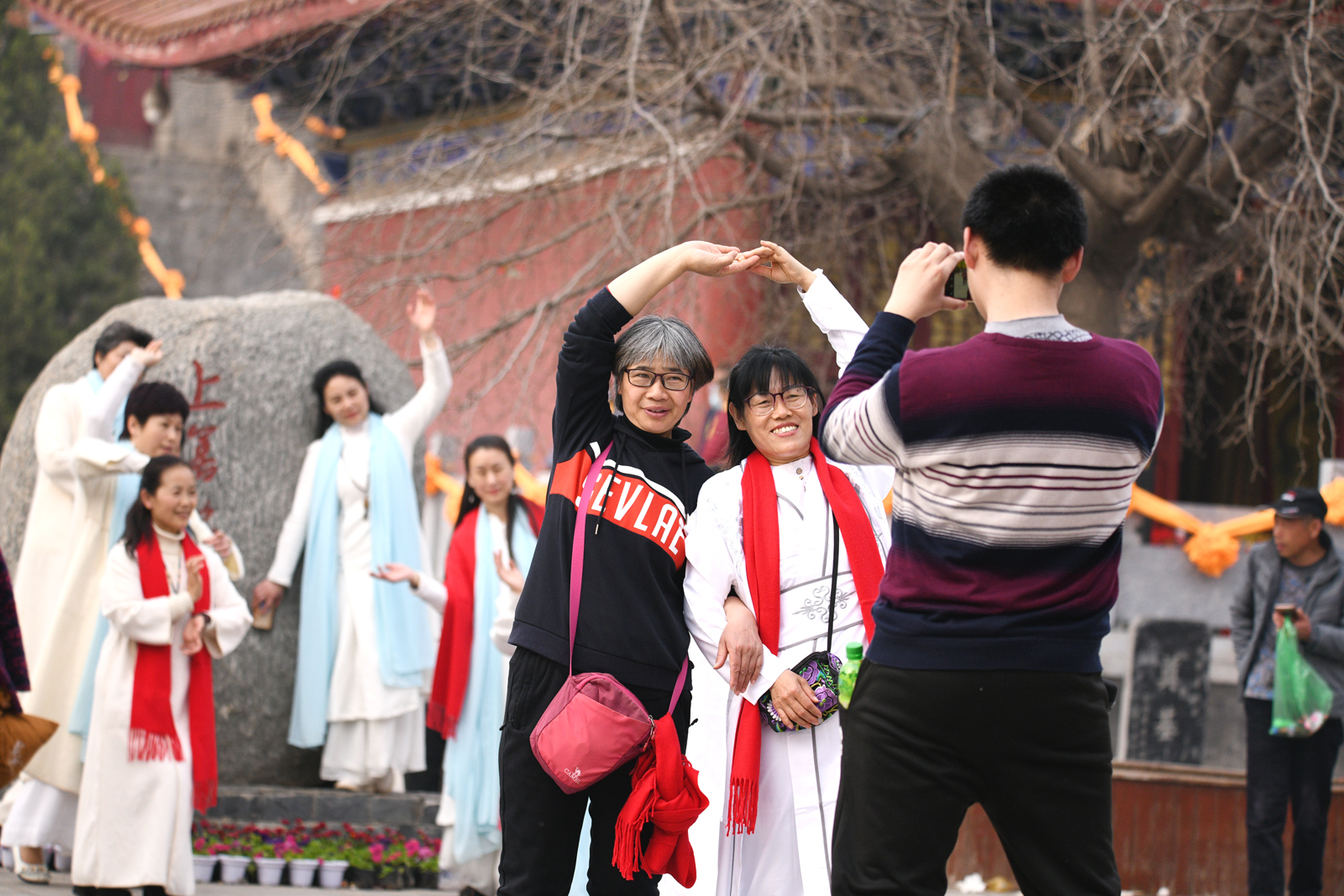 記者在太清宮、明道宮景區(qū)看到,景區(qū)方面在做好疫情防控的情況下全面開放,迎接為期一個月的老子廟會。游客們則自覺地戴著口罩有序地進入景區(qū)游玩、祭拜。