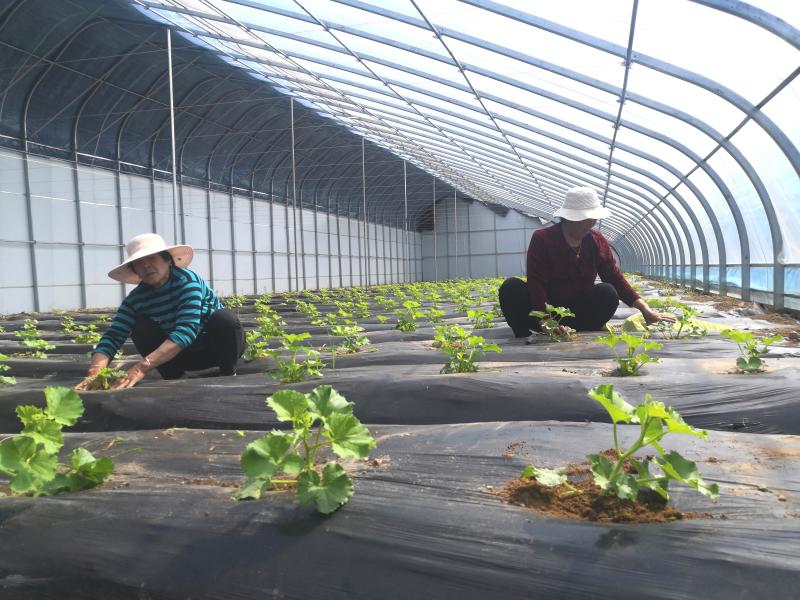 “當(dāng)下,正逢‘吊秧’香瓜生長旺盛的時(shí)候,這幾天,我和馮大姐一直在大棚里忙活,每天有事兒干、有人陪說話,還可以掙到60元的工錢,就在家門口,多好??!”4月8日,在半截樓村新建的溫室大棚內(nèi),65歲的李愛蓮一邊忙著為瓜秧打岔,一邊對(duì)記者說。