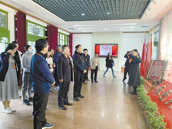 在紅安縣列寧小學(xué)舊址,周口報(bào)人在講解員的帶領(lǐng)下,學(xué)習(xí)了紅安兒女“一要三不要”“一圖兩不圖”的革命信念,“樸誠勇毅、不勝不休”的紅安精神。在昔日的教室里,周口報(bào)人齊唱《八月桂花遍地開》,致敬紅安革命烈士不怕犧牲、勇于斗爭(zhēng),為新中國解放事業(yè)拋頭顱、灑熱血的大無畏精神。
