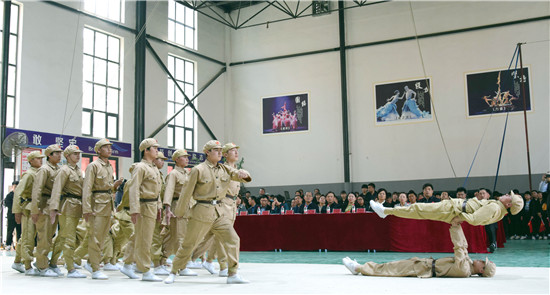 4月12日下午,項城市雜技藝術(shù)學(xué)校通過運(yùn)用雜技藝術(shù)編創(chuàng)的紅色雜技劇,在該校首次面向社會展演,以慶祝建黨100周年。同學(xué)們穿著解放軍服裝,模擬渡江、登城、翻越城墻、槍林彈雨戰(zhàn)斗等場景,演繹了一場紅色文化教育的情景劇,讓人耳目一新,受到大家一致好評。周口日報·周道客戶端記者 梁照曾 攝