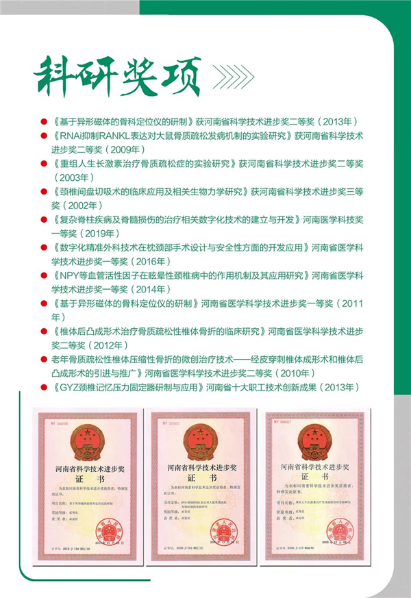 高延征,主任醫(yī)師,二級(jí)教授,博士后導(dǎo)師,國(guó)家級(jí)知名專家,享受河南省人民政府特殊津貼專家,目前擔(dān)任鄭州大學(xué)、河南大學(xué)、山東大學(xué)碩士研究生導(dǎo)師,河南省人民醫(yī)院(骨科)脊柱脊髓外科主任、學(xué)科帶頭人,河南省脊柱外科診療中心主任,河南省醫(yī)學(xué)會(huì)骨科分會(huì)主任委員。