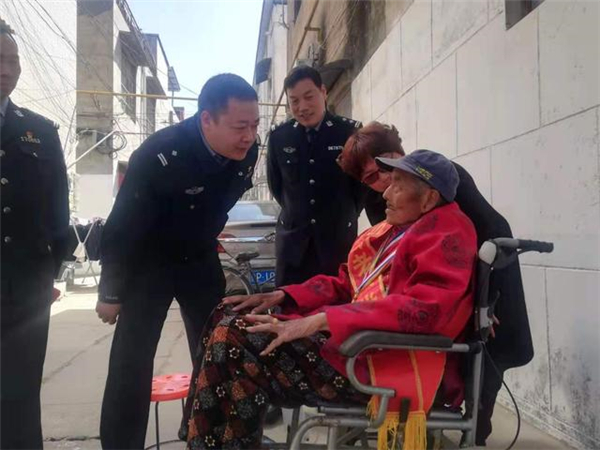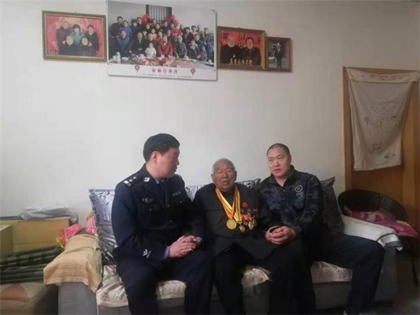 一大早,該所黨員民警身著戎裝,排著整齊的隊(duì)伍,分別前往荷花路派出所轄區(qū)的閆莊社區(qū)、荷花社區(qū)、前王營(yíng)等社區(qū),探望慰問(wèn)年逾花甲的抗戰(zhàn)老英雄,聆聽他們?cè)诳箵羟致缘膽?zhàn)斗歲月里浴血奮戰(zhàn)、不屈不撓的感人故事。在戰(zhàn)斗英雄尤洪亮家中,民警深切感受了那場(chǎng)保家衛(wèi)國(guó)反擊戰(zhàn)的慘烈,看到了新時(shí)代最可愛(ài)的人。