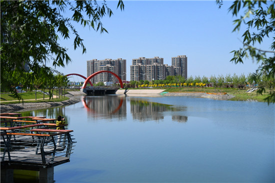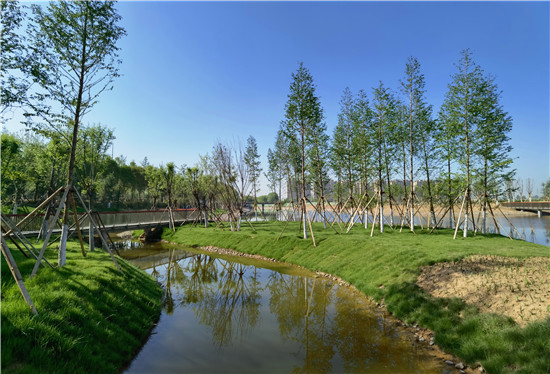 眼下雖不是詞中所描繪的初春時(shí)節(jié),但是暮春的水系風(fēng)光更具詩(shī)情畫意。女媧路魚翔湖是一處以水凈化、水景觀、水科普為主的濱河濕地游園。漫步于此,新綠點(diǎn)綴其中,步道曲徑通幽,河水清澈透明,頓覺神清氣爽。沙河玉盤落珠節(jié)點(diǎn),曲廊環(huán)繞,波光鱗鱗,垂柳慢舞,河流猶如飄帶蜿蜒流淌,一路步行聞花香聽鳥鳴,繪出一幅唯美畫卷。②9