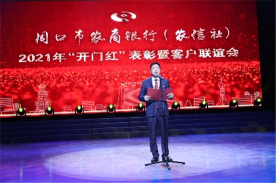 當(dāng)晚7時(shí),隨著一曲開場(chǎng)舞《我們的祖國歌甜花香》的表演,周口市農(nóng)商銀行(農(nóng)信社)“開門紅”總結(jié)表彰暨客戶聯(lián)誼晚會(huì)正式拉開序幕。