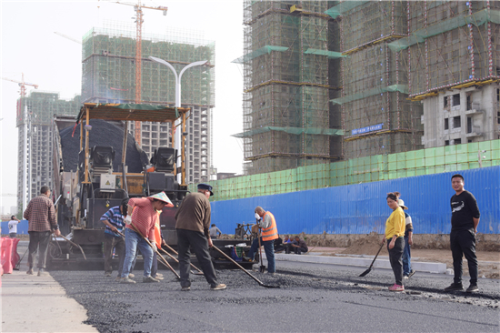 西側(cè)的非機(jī)動車道正在最后的柏油鋪設(shè)