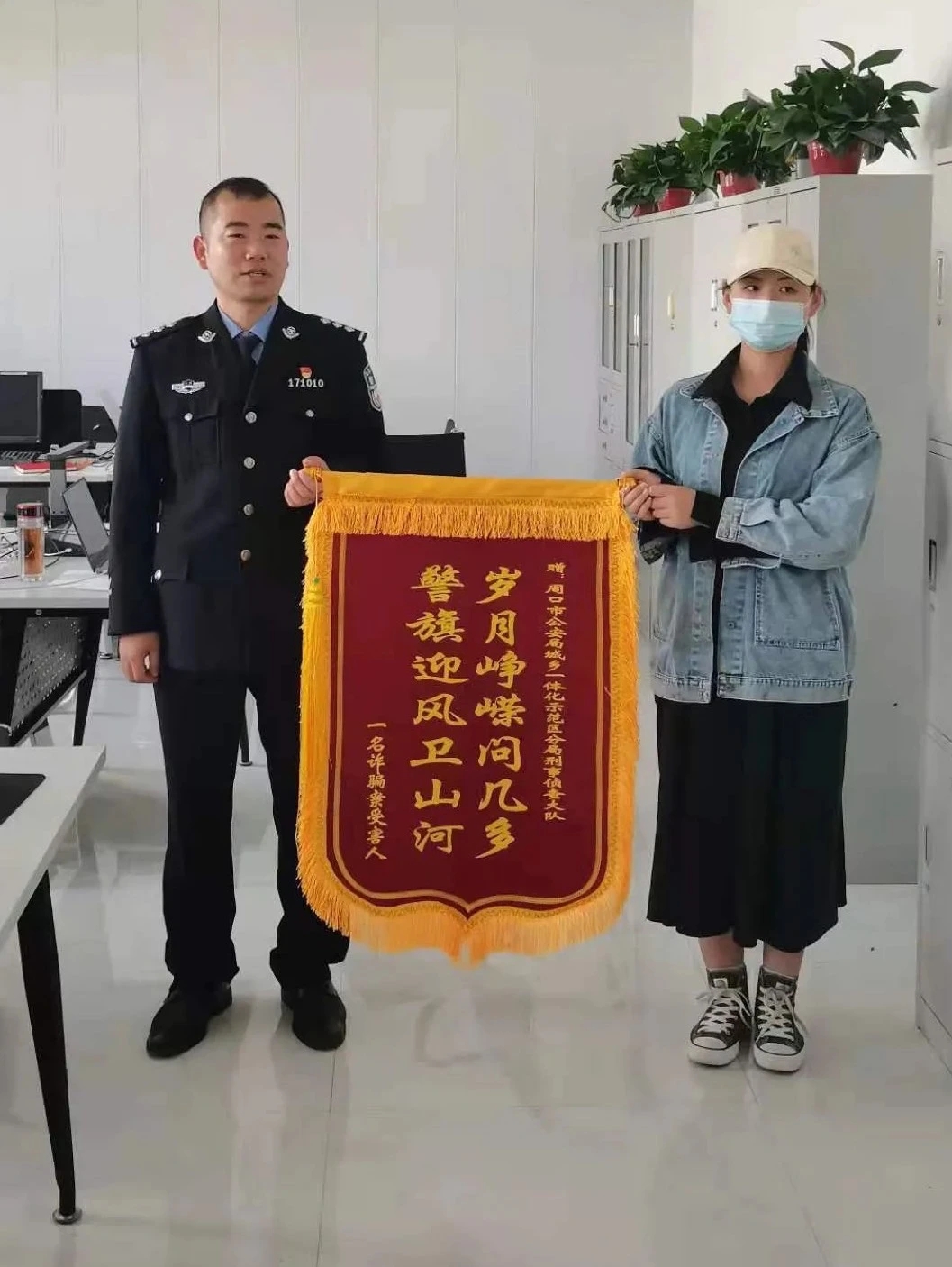 周口日報·周道客戶端記者 侯國防記者從周口市公安局獲悉,貴州男子魏某利用周口一高校女生心思單純,騙取其6000多元。近期,周口市公安局示范區(qū)分局通過積極工作,南下貴州,在當地警方支持配合下,成功將犯罪嫌疑人魏某抓獲,并追回該女生被騙的錢財,為受害人挽回了經濟損失。受害人為此特意贈送一面錦旗表示感謝。