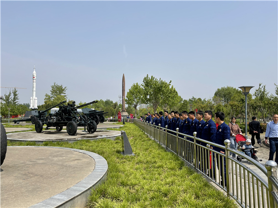 5月4日上午,天氣晴朗。在周口公園,周口市城鄉(xiāng)一體化示范區(qū)消防大隊(duì)的青年消防隊(duì)員們通過跑步訓(xùn)練等方式慶祝五四青年節(jié)。消防隊(duì)員欒慶帥告訴記者:“今天是五四青年節(jié),我們通過訓(xùn)練、參觀國(guó)防設(shè)施這樣的方式,來表達(dá)我們的愛國(guó)熱情?!?span style="text-indent: 32px;">②9