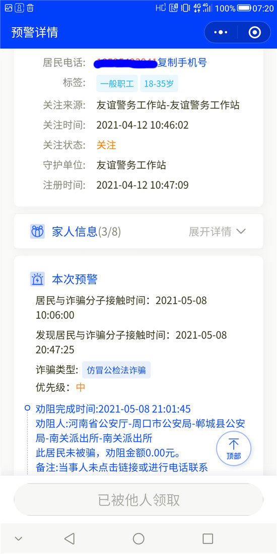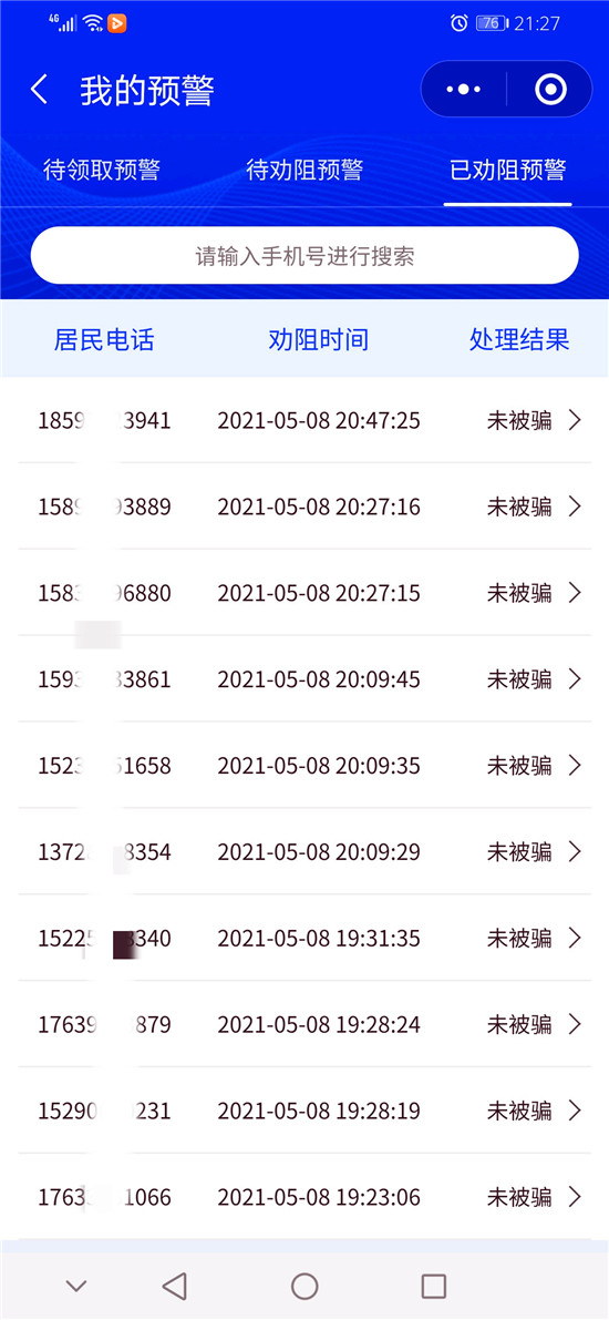 截至目前,洺南街道“金鐘罩”反詐預(yù)警系統(tǒng)注冊人數(shù)達21929人,受保護居民29547人,成功勸阻155人次免受電信網(wǎng)絡(luò)詐騙,取得了良好的社會效果。①9