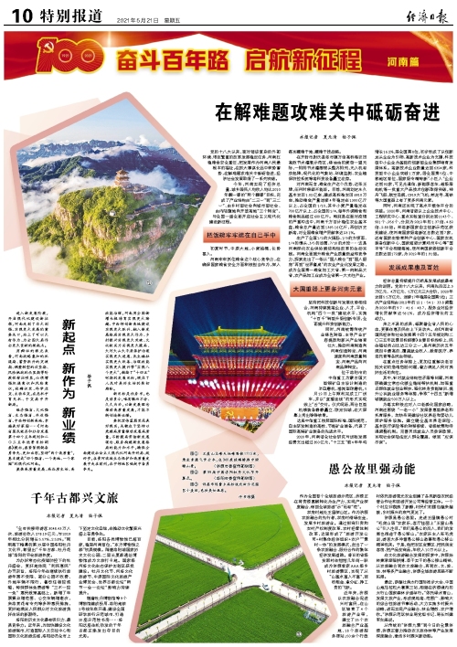 今年,河南實現(xiàn)了經(jīng)濟(jì)總量、城鄉(xiāng)居民人均收入均比2010年翻一番的“兩個翻番”目標(biāo),完成了產(chǎn)業(yè)結(jié)構(gòu)由“二三一”到“三二一”、由鄉(xiāng)村型社會向城市型社會、由內(nèi)陸腹地向開放高地“三個轉(zhuǎn)變”,與全國一道全面開啟社會主義現(xiàn)代化建設(shè)新征程。