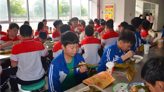 • 6月14日,端午節(jié),鄲城縣第二實驗中學朱玉良、李繼元等校領(lǐng)導(dǎo)在餐廳和學生一起集體過端午。