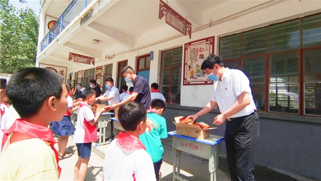 • 6月20日,周口市婦聯(lián)、周口市大鐵牛巾幗志愿者聯(lián)合會、周口市家庭教育學會的志愿者們來到商水縣湯莊鄉(xiāng)均戶莊小學,為孩子們送上香包和圖書,志愿者還走訪慰問了該村困境婦女家庭,送去慰問金和生活用品,鼓勵她們要自強不息、樂觀生活。