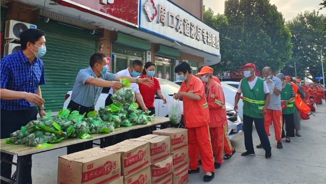 • 6月2日7時,市總工會、市慈善總會開展端午節(jié)慰問活動,為工作在一線的環(huán)衛(wèi)工人送去了2400個粽子。