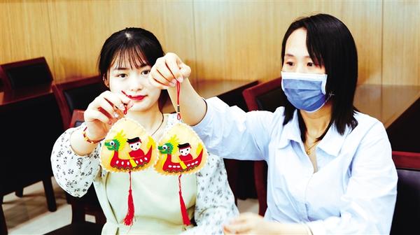 • 6月20日,市城鄉(xiāng)一體化示范區(qū)工作人員展示做好的香囊。當日,市城鄉(xiāng)一體化示范區(qū)開展“聞香過端陽 仲夏戴香囊”文明實踐主題活動,從拼龍舟、縫香囊、畫團扇、DIY粽子等一系列活動來沉浸式體驗優(yōu)秀傳統(tǒng)手工藝文化。