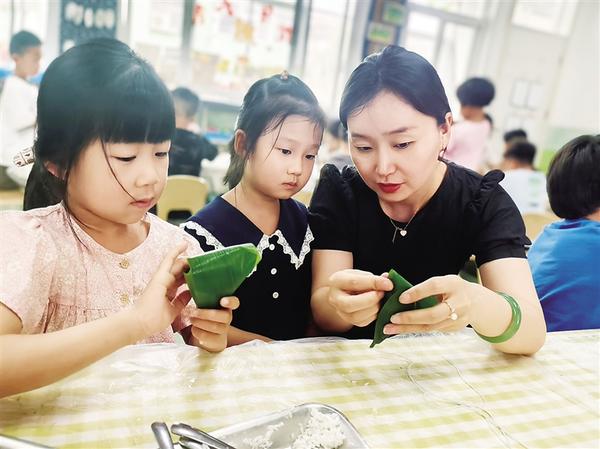 • 近日,一名幼兒園老師在指導(dǎo)孩子們包粽子。端午節(jié)前夕,周口市市直幼兒園舉辦“迎端午包粽子”活動,旨在培養(yǎng)孩子們的動手能力,激發(fā)勞動熱情,受到孩子們的歡迎。