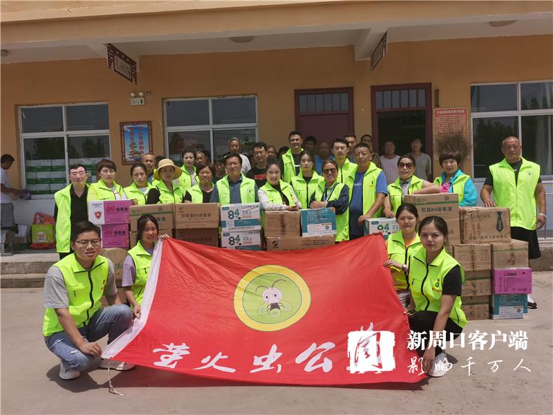 時(shí)刻關(guān)注受災(zāi)群眾動(dòng)態(tài)的周口螢火蟲公益組織得知這一情況后,于7月30日上午再次奔赴西華縣紅花鎮(zhèn),為即將返家的王橋行政村村民送去呋喃西林粉、蚊蟲叮咬液、消毒凝膠、口罩、84消毒液等價(jià)值兩萬(wàn)余元的消殺物資?!班l(xiāng)親們今天回家,這些東西正好用得著。謝謝你們!”王橋行政村村干部和富平代表村民向周口螢火蟲公益表示感謝。