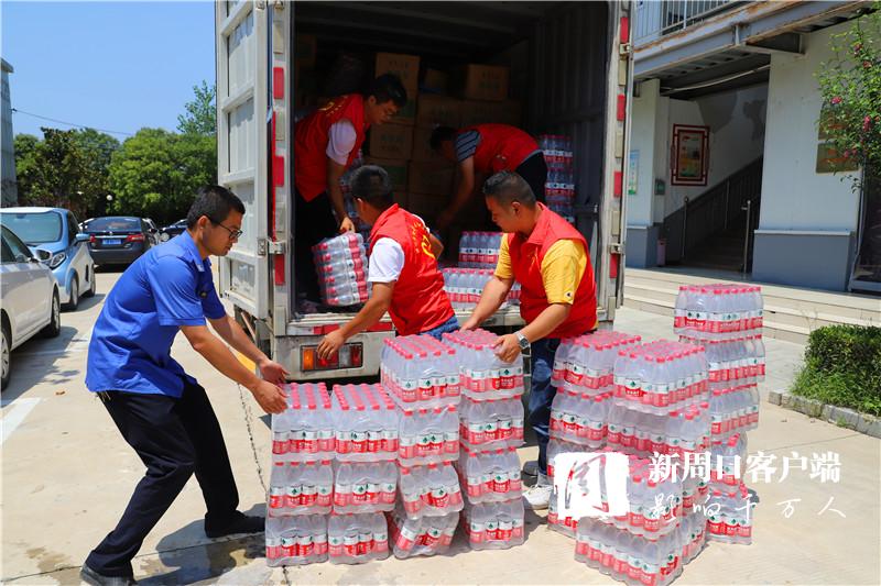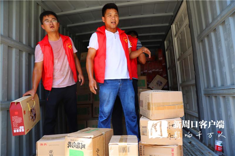 當天中午,掛著印有“昨天大家助我脫貧,今天我為救災(zāi)出力!”條幅的防汛救災(zāi)物資運輸車抵達周口港區(qū)?!耙皇乔皟商旆烙_風‘煙花’,我們早就來了?!甭」糯妩h支部書記段長春一下車就連忙慰問眾人。一同前往的還有6位年輕力壯的志愿者,他們不辭勞苦,和港區(qū)消防、城管人員一起頂著烈日,用了半個多小時將滿車物資搬運到位。