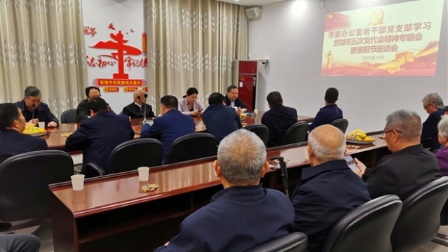 10月14日,市委辦公室召開(kāi)“九九重陽(yáng)節(jié)”老干部座談會(huì),聽(tīng)建議,敘情誼,共慶重陽(yáng)佳節(jié)。