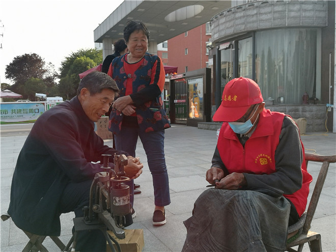 “我們這一帶沒有縫衣、修鞋的,修一次要跑老遠(yuǎn)?!?8歲的張阿姨說,真感謝這些志愿者,為自己解決了生活的難題。