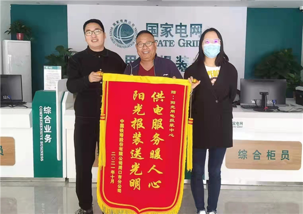 “供電公司的陽(yáng)光業(yè)擴(kuò)報(bào)裝服務(wù)真不錯(cuò),我們申請(qǐng)用電只需要在網(wǎng)上提交材料,有什么不清楚不明白的,電話就能直接溝通。我們的一個(gè)5G基站點(diǎn)最快用了不到3天就完成了用電報(bào)裝流程,這服務(wù)效率,值得我們學(xué)習(xí)啊!”近日,在國(guó)網(wǎng)周口供電公司陽(yáng)光報(bào)裝中心,中國(guó)鐵塔股份有限公司周口分公司業(yè)務(wù)經(jīng)理朱義嶺一邊將印有“供電服務(wù)暖人心 陽(yáng)光報(bào)裝送光明”的錦旗遞給供電工作人員,一邊感謝該公司對(duì)鐵塔基站建設(shè)提供的支持。