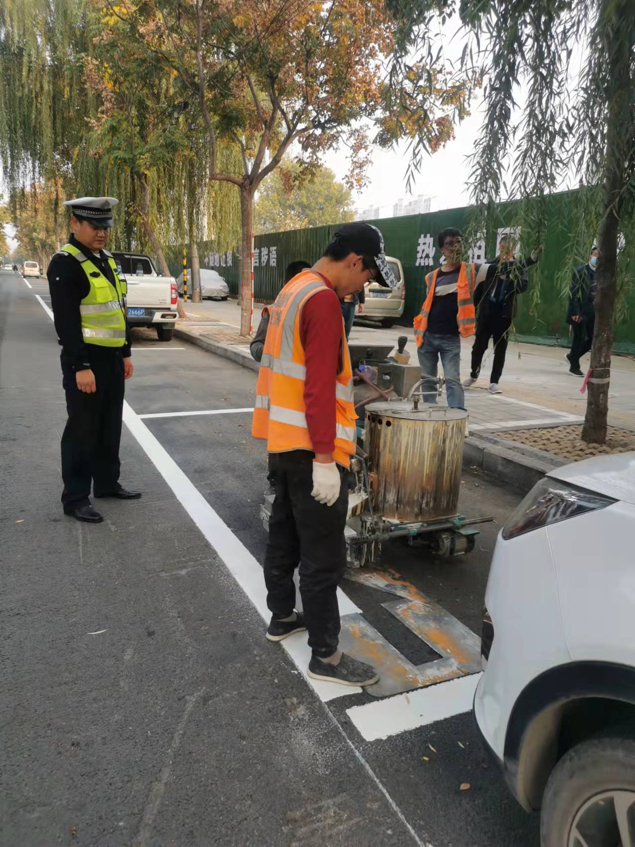 當(dāng)日下午,記者在黃河路看到,施工人員正在熟練地操作標(biāo)線機(jī),認(rèn)真細(xì)致地施劃減速震蕩標(biāo)線。市公安局交通管理支隊(duì)設(shè)施維護(hù)中心(以下簡(jiǎn)稱設(shè)施維護(hù)中心)工作人員黃勇說(shuō):“在創(chuàng)文期間,設(shè)施維護(hù)中心加大對(duì)道路護(hù)欄的清洗力度,完善交通信號(hào)燈的維護(hù),清除學(xué)校門口不合理的停車位,修剪遮擋交通設(shè)施的樹枝,排除路口的交通隱患?!?/p>