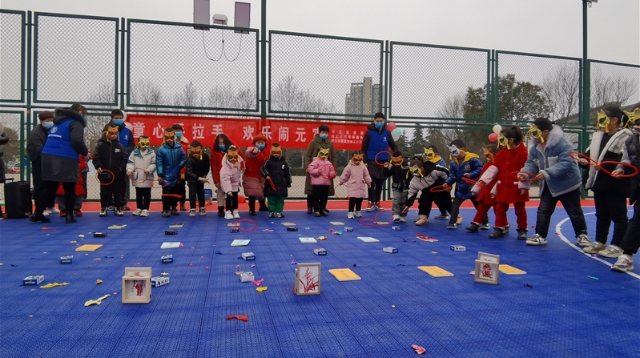 2月15日是元宵節(jié),川匯區(qū)城南街道辦事處聯(lián)盟新城社區(qū)廣場上,一群戴著老虎面具的“虎娃”正在參加“童心手拉手 歡樂鬧元宵”活動。