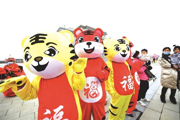 2月15日,幾名工作人員身穿萌虎造型服裝向市民招手。當(dāng)日,由市文化廣電和旅游局主辦,市文化館、市美術(shù)館、市圖書館承辦的“我們的節(jié)日‘元宵節(jié)’——周口市群眾文化系列活動‘寅虎賀春鬧元宵’”在市文化藝術(shù)中心舉行。