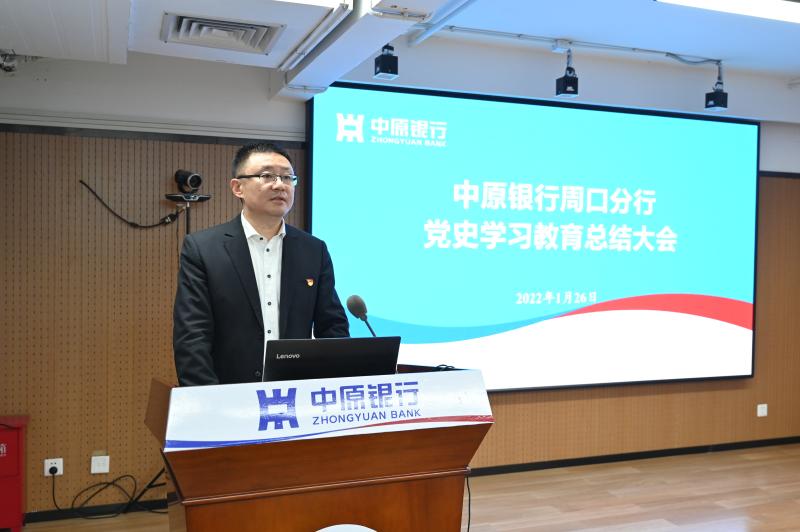 為總結(jié)黨史學(xué)習(xí)教育取得的成效,推動(dòng)各項(xiàng)工作高質(zhì)量發(fā)展,日前,中原銀行周口分行召開(kāi)黨史學(xué)習(xí)教育總結(jié)大會(huì)。分行班子成員及有關(guān)部門(mén)負(fù)責(zé)人參加會(huì)議。