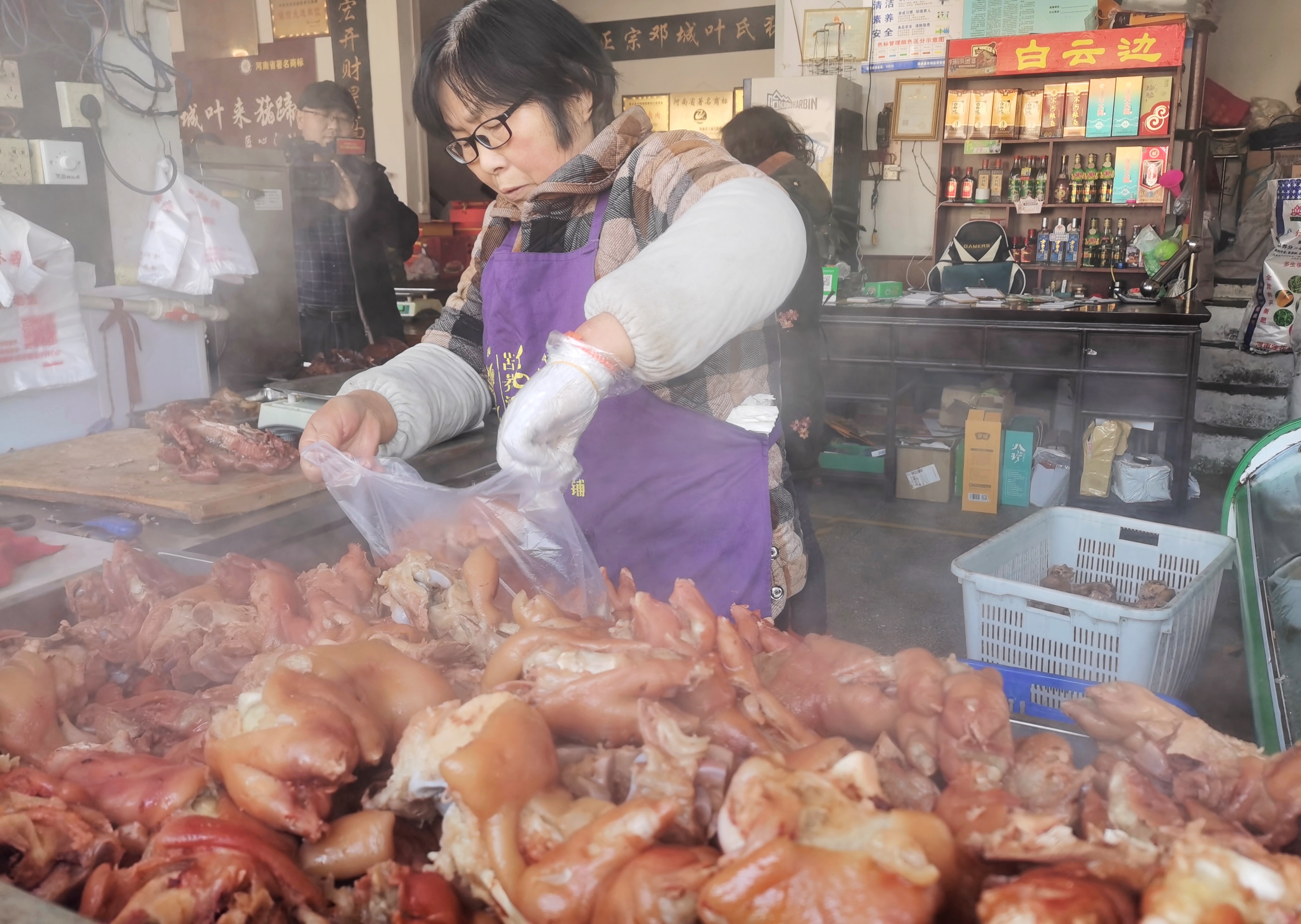 鄧城葉來豬蹄老店,剛出鍋的豬蹄是搶手貨,即將端上新年餐桌