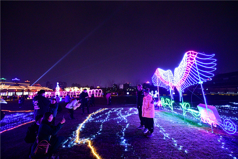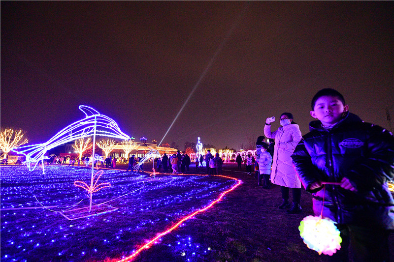 關(guān)帝廟東側(cè)綠地布滿(mǎn)各種彩燈造型